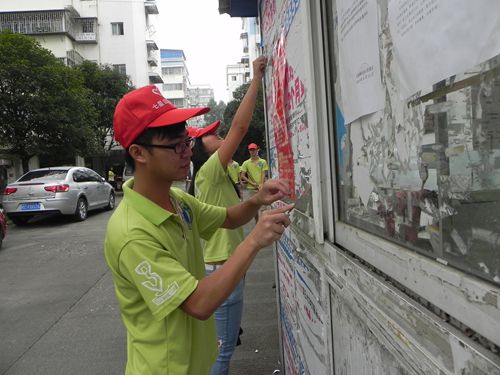 为进一步做好社区城乡环境综合治理工作,以优良的环境迎接社区城乡环境综合治理测评及全国城市文明程度测评,同时丰富同学的课余生活。2014年9月18日上午,我系团委学生会同学在社区工作人员的邀请下,与他们一起开展了社区环境治理志愿服务活动。