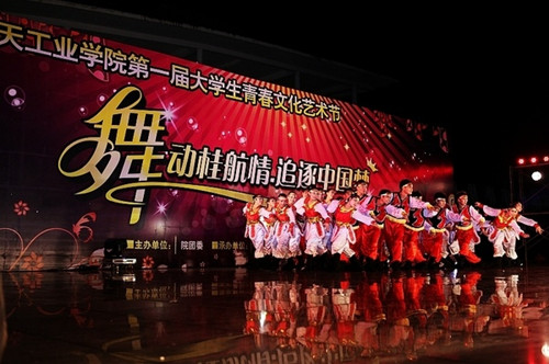 5月30日晚,由院团委主办、电子工程系承办的第一届大学生青春文化艺术节“舞动桂航情.追逐中国梦”集体舞蹈大赛在青春广场举行。副院长詹皖生、学生工作处处长梁国富、院团委书记杨永昌、副书记唐韬、各系党总支副书记以及团委书记在现场与同学们共同观看了精彩的表演。