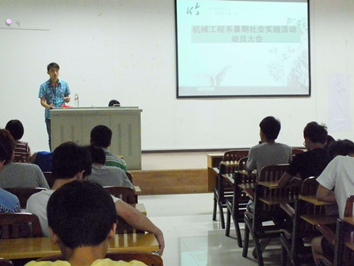 为了落实好我院大学生暑期社会实践活动的指示精神,更好地组织开展我系今年大学生暑期社会实践活动。机械工程系于7月8日下午15:30在一教423教室举行了大学生暑期社会实践动员大会。我系团委书记曺轶杰老师出席了本次动员大会,从项目选题立项、实施进度规划、调研报告撰写等方面给予指导,重点强调了实践过程中的安全注意事项。同时,还邀请了上届暑期社会实践项目获奖的同学分享他们的宝贵经验,让同学们对暑期社会实践活动有了更进一步的了解,对即将开展的活动有很大的指导意义。