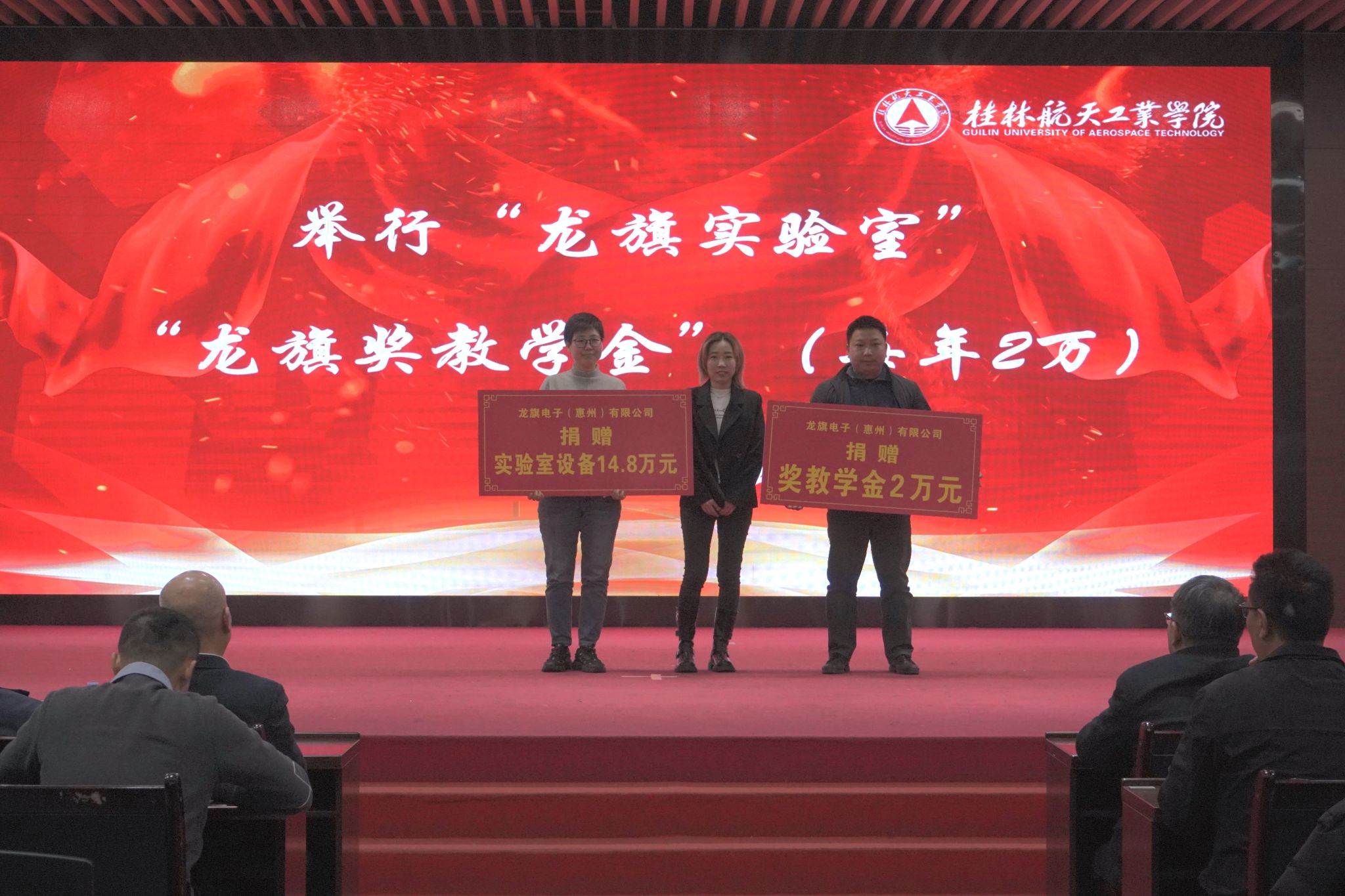 大会举行了“龙旗实验室”“龙旗奖教学金”捐赠仪式,与会嘉宾为获奖师生及团队颁奖,企业负责人为顺利结业的订单班学生颁发结业证书,张烈平代表学校为企业代表、校友代表颁发“职业发展导师”“校友榜样示范导师”聘书。