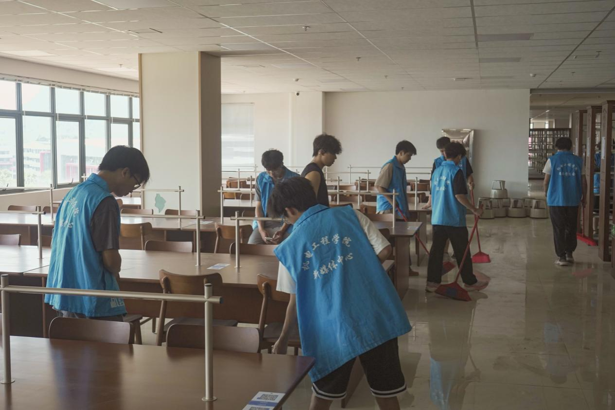 6月5日中午,bevictor伟德官网近百名师生齐聚问天楼图书馆,开展开馆前卫生清扫志愿服务活动。此次活动由学院党员师生、学生会干部及新媒体中心学生干部共同参与,充分发挥“机电先锋”模范作用与组织协调能力,为新馆开馆营造洁净、有序的阅读环境。