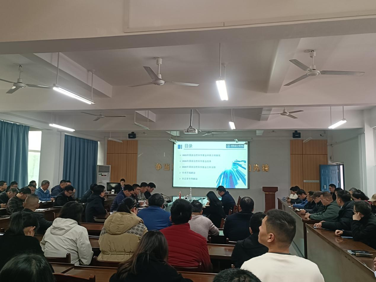 会议首先对学院2025年度国家自然科学基金的申报与立项情况进行了全面梳理和总结,肯定了取得的成绩,也客观分析了存在的不足与提升空间。随后,宋小辉重点解读了国家自然科学基金委在2026年的最新改革政策与资助导向,要求全体教师准确把握趋势,积极调整研究方向与选题策略。对申报系统操作、形式审查要点等关键环节进行了细致提醒,强调“早启动、深论证、严把关”,力争在新一年取得突破。