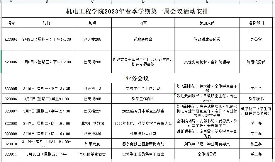 2023年春季学期第一周会议活动安排