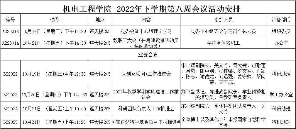 2022年下学期第八周会议活动安排