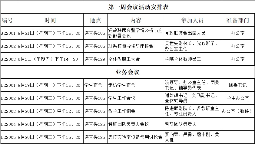 2022年下学期第一周会议活动安排