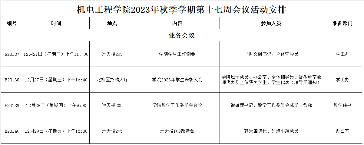 2023年秋季学期第十七周会议活动安排