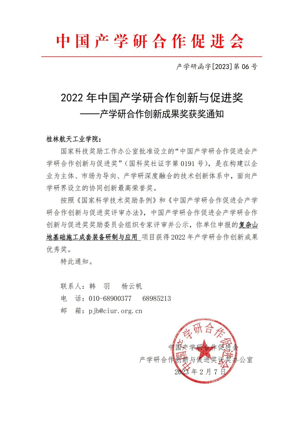 近日,中国产学研合作促进会公布了2022年中国产学研合作创新与促进奖获奖项目,我校bevictor伟德官网刘忠教授团队申报的项目“复杂山地基础施工成套装备研制及应用”获2022年中国产学研合作创新成果奖优秀奖(桂林航天工业学院为申报单位,广西机械工会学会、广西徐沃工程设备有限公司、四川电力设计咨询有限责任公司、常熟安得电力机具制造有限公司为合作完成单位),实现了我校在国家级产学研合作创新与促进奖从0到1的突破。