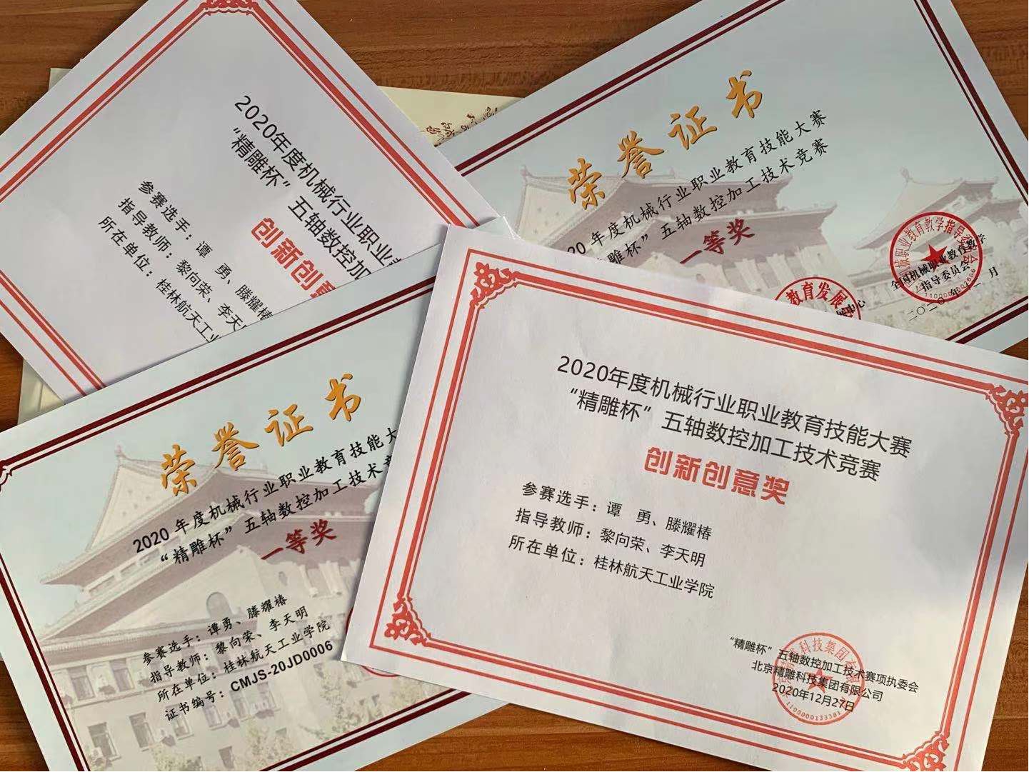 经过2天的激烈角逐,我校参赛学生谭勇、滕耀椿喜获一等奖,同时摘得创新创意奖,成为唯一一支同时获得一等奖和创新创意奖的参赛队伍,我校两位学生在闭赛现场均获得北京精雕科技集团有限公司董事长颁发的预录取通知书。湖南文理学院等14所院校取得二等奖,深圳职业技术学院等20所院校院校取得三等奖。本次比赛参赛选手发扬了“中国工匠精神”,以赛促学,以赛促训,努力钻研五轴加工前沿技术,为中国智造贡献了属于年轻一代的智慧和力量。