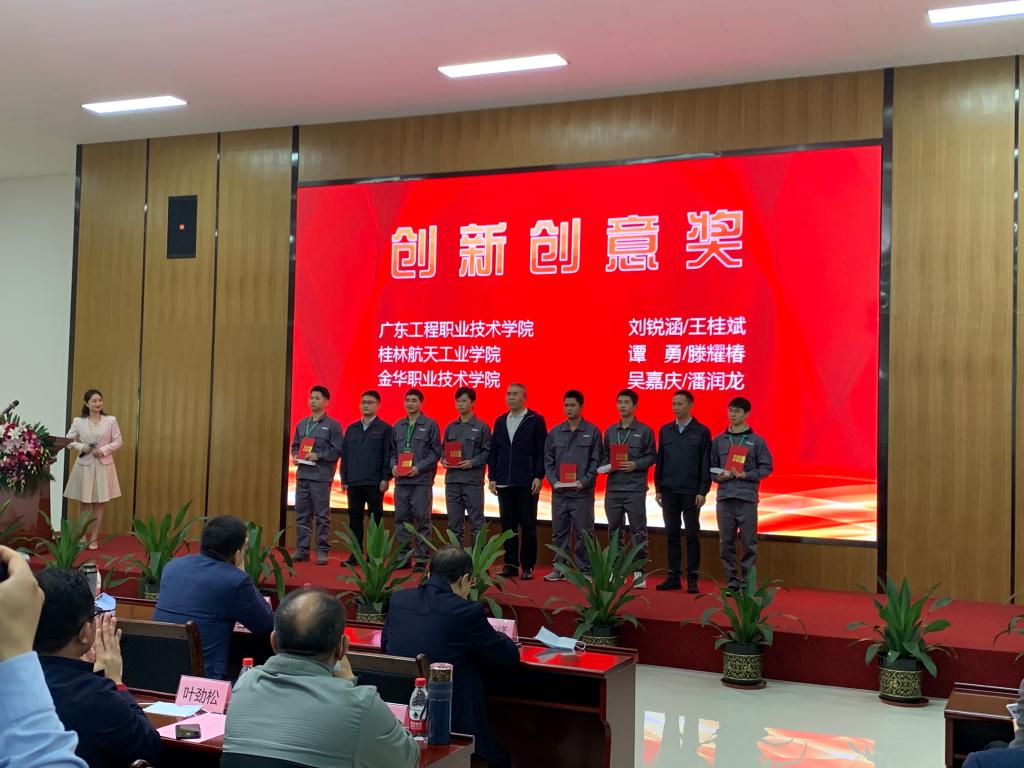 于12月27日,在北京精雕广东大区产品验证展示中心举行了闭赛式。闭赛式中,各界领导、大赛专家、裁判组对此次参赛选手们优秀的综合素质、专业的五轴加工技能,以及作品的精湛工艺进行了一致肯定和赞扬,赛后北京精雕科技集团有限公司董事长、总裁蔚飞和我校参赛学生及我院院长合影留念。
