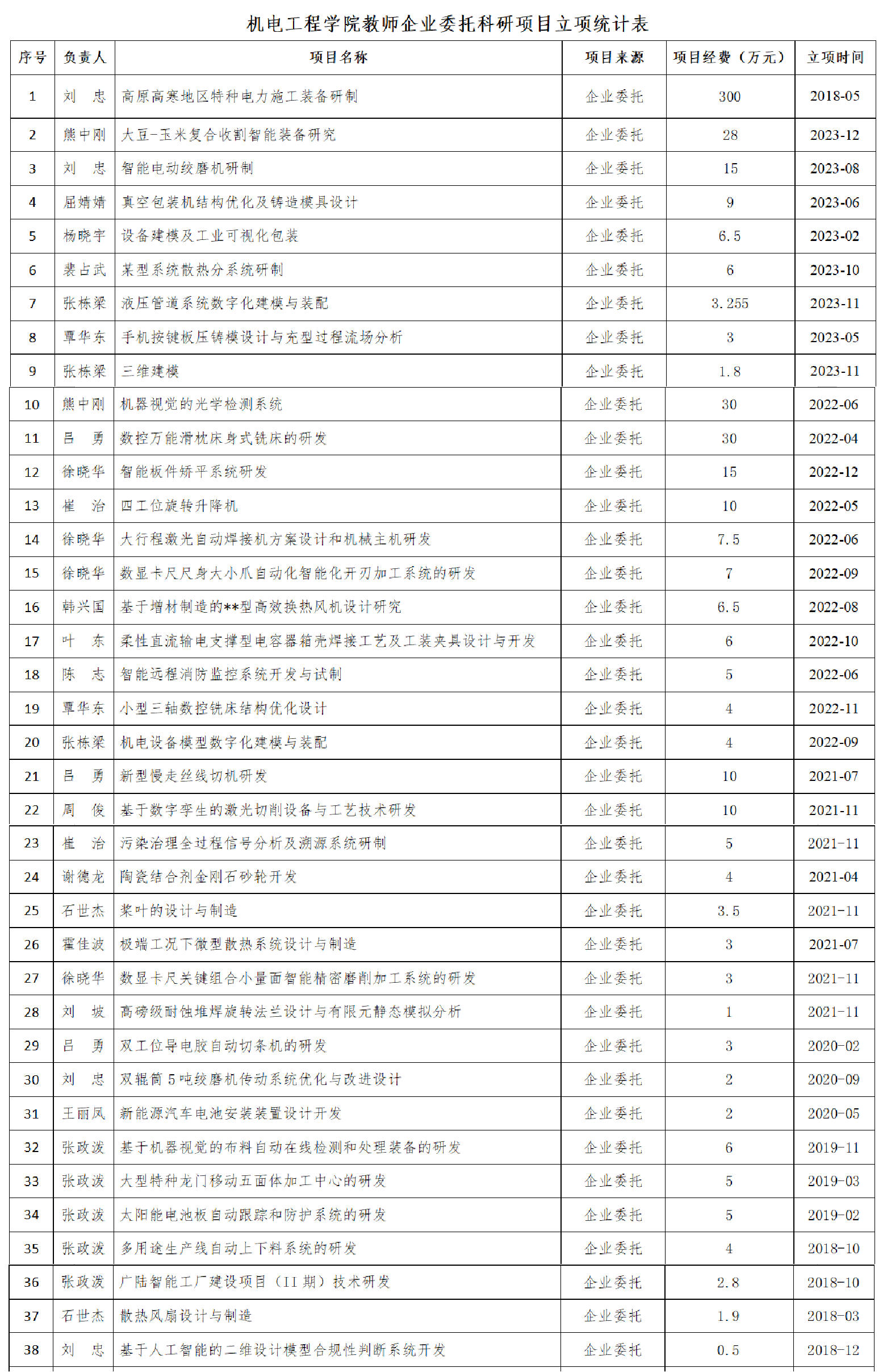 bevictor伟德官网教师企业委托科研项目立项统计表