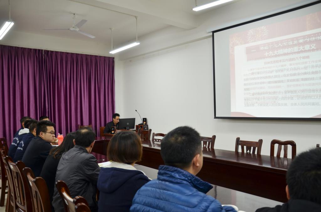 11月17日下午,学院组织教工第二党支部全体人员,在巡天楼205会议室举行学习贯彻党的十九大精神座谈会,党总支书记陈爱民出席会议,教工二支部书记黎向荣主持会议。