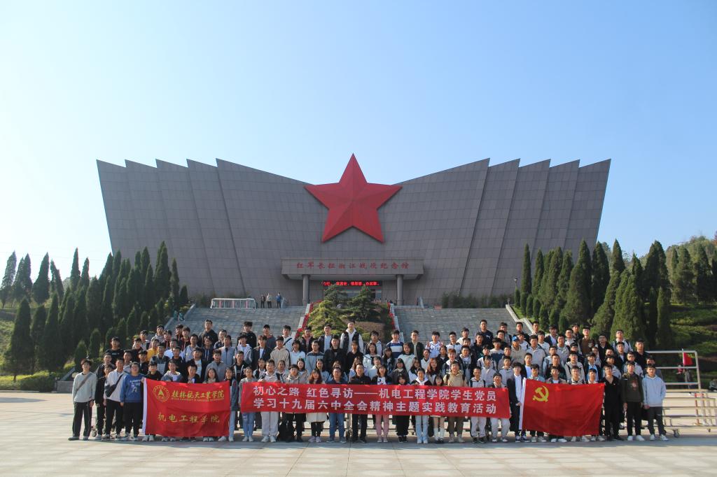 学院全体学生党员、入党积极分子、学生干部代表在全州湘江战役纪念馆前合影(图1)