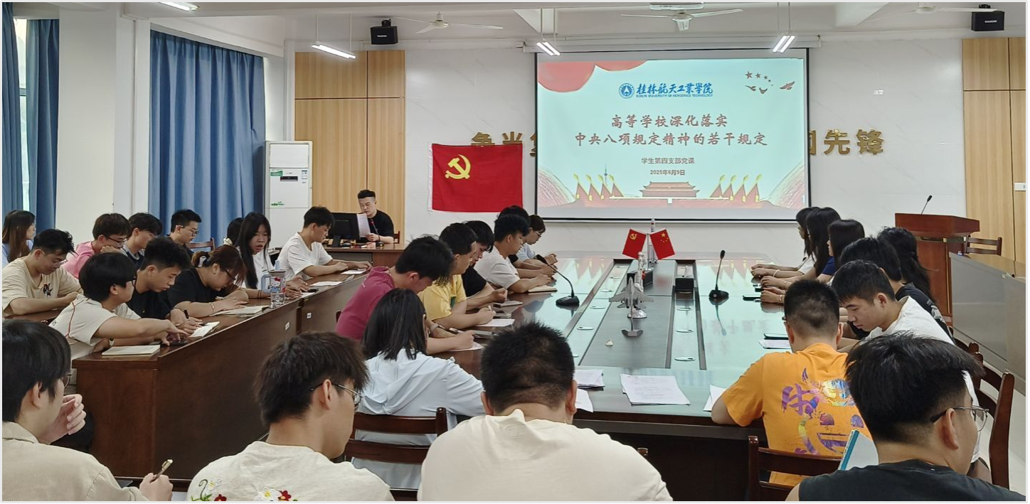 为深入贯彻落实《党政机关厉行节约反对浪费条例》,践行中央八项规定精神,引导青年党员深化对节约理念的认知与责任担当,桂林航天工业学院bevictor伟德官网学生第四党支部于6月11日举办“学条例精神,践节约使命——聚焦厉行节约,争做节俭先锋”主题党课。支部全体党员以专题学习会形式,围绕条例核心要义与中央八项规定精神展开深入研讨,现场思想碰撞热烈,学习成效显著。