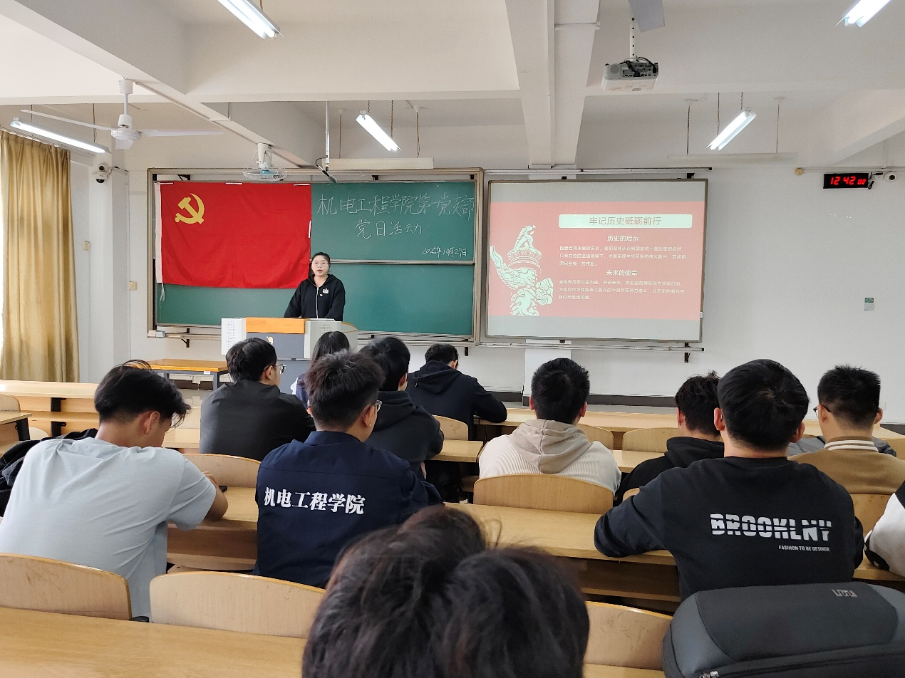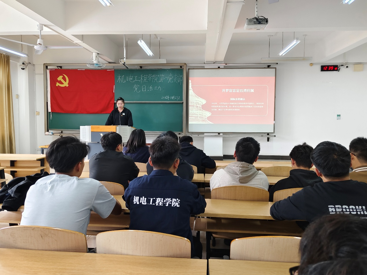 为深入学习贯彻习近平新时代中国特色社会主义思想,落实立德树人根本任务,传承红色基因、厚植家国情怀,引导青年党员深刻认识台湾光复的历史意义,增强维护国家主权与领土完整的责任感和使命感,10月29日,bevictor伟德官网学生第一党支部在南校区飞天楼207,以“从抗战胜利到国家统一——传承红色基因”为主题,开展台湾光复历史专题学习党日活动。支部全体党员参会。