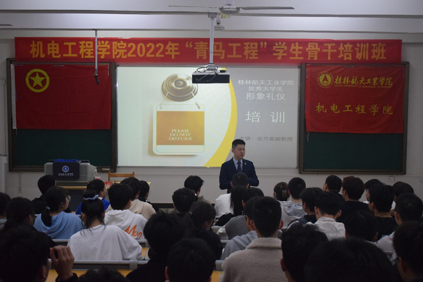 为提高学院学生干部的礼仪形象和综合素养。3月31号晚19:30,bevictor伟德官网于探天楼B202教室举办第二期“青马工程”学生骨干培训班第四讲。本次培训以“优秀大学生形象礼仪培训”为主题,邀请谷万里副教授作为主讲人,机电工程学院团委学生会、党务中心和新媒体中心共180余名干部参加培训。