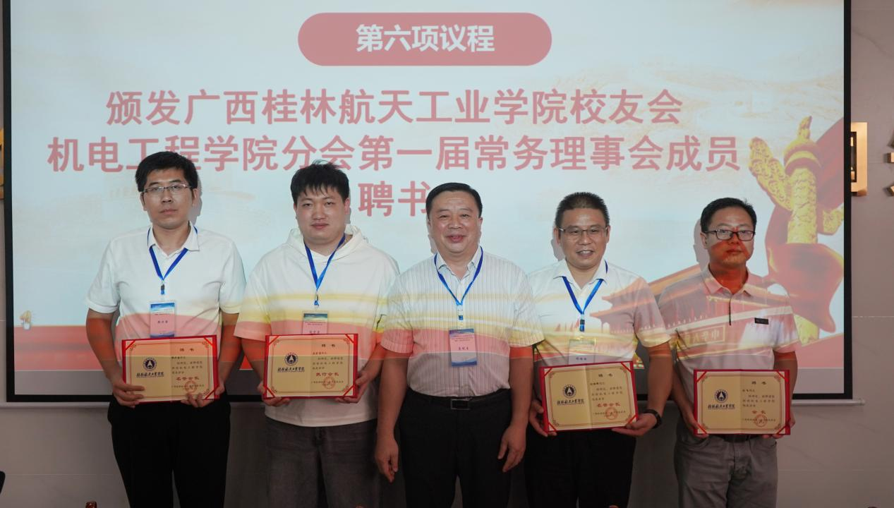 图30 广西桂林航天工业学院校友会常务副会长、原副校长詹皖生为当选人员颁发聘书