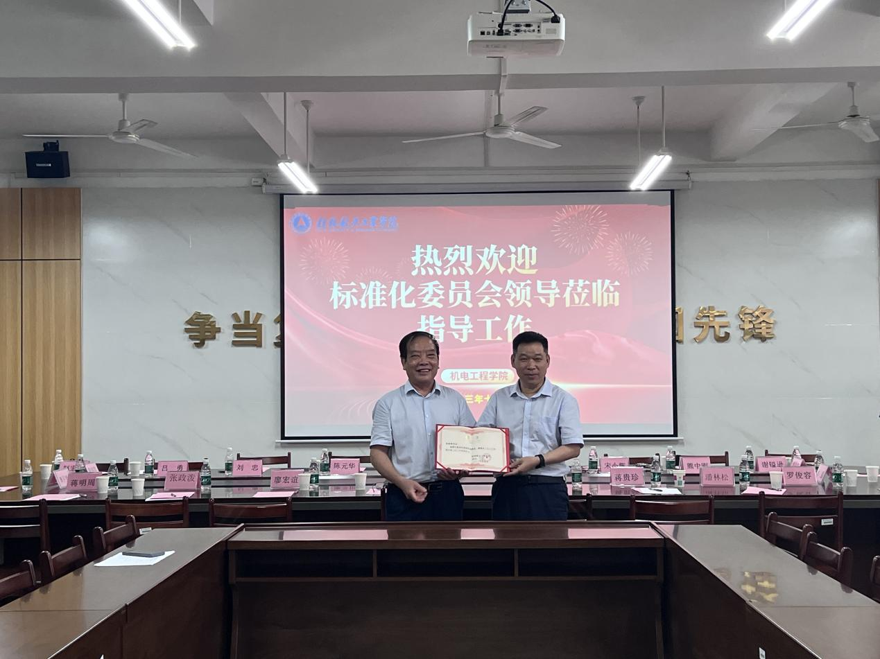 7月8日上午,广西机械工程学会标准审查会暨广西机械工程学会监事长李振雄客座教授授予仪式在桂林航天工业学院举行,学校副校长孙山林及bevictor伟德官网、汽车工程学院的负责领导出席会议。广西机械工程学会监事长李振雄、桂林电子科技大学教授廖宏谊、桂林电器科学研究院有限公司教授级高级工程师王学林、桂林桂北机器有限责任公司教授级高级工程师蒋贵珍等标委会专家,桂林中锐特机械制造有限公司总经理罗俊容、桂林汇博科技有限公司总经理管宏、常熟阿尔法模具制造有限公司董事长李月明、昆山美地精密制造有限公司总经理李强等企业领导参加会议。