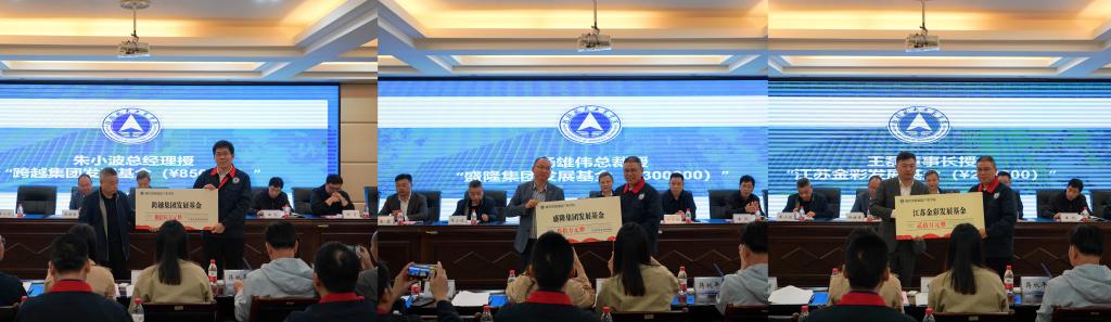 为促进产业学院的高效运行,盛隆电气集团有限公司、广西跨越有色金属集团有限公司、江苏金彩高分子材料科技股份有限公司分别向学校设立 “盛隆集团发展基金(¥300000)”、“跨越集团发展基金(¥850000)”、“江苏金彩发展基金(¥200000)”并举行了基金捐赠仪式。
