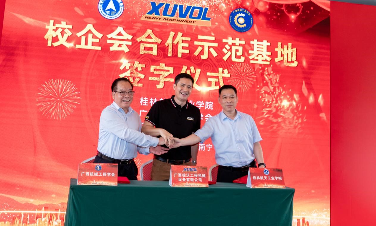 本次揭牌成立的校企会合作示范基地是在广西科协、广西东盟经开区指导支持下由桂林航天工业学院、广西机械工程学会、广西徐沃工程机械设备有限公司共同发起的校企合作创新平台,旨在以“校企会”多元化示范合作为基础,加强产学研的融合深度,提升高校与企业的科技创新能力,联合开展高端特种工程装备“产学研施用”一体化模式下的创新探索与成果转化,将产学研成果应用于广西及国家重大工程。
