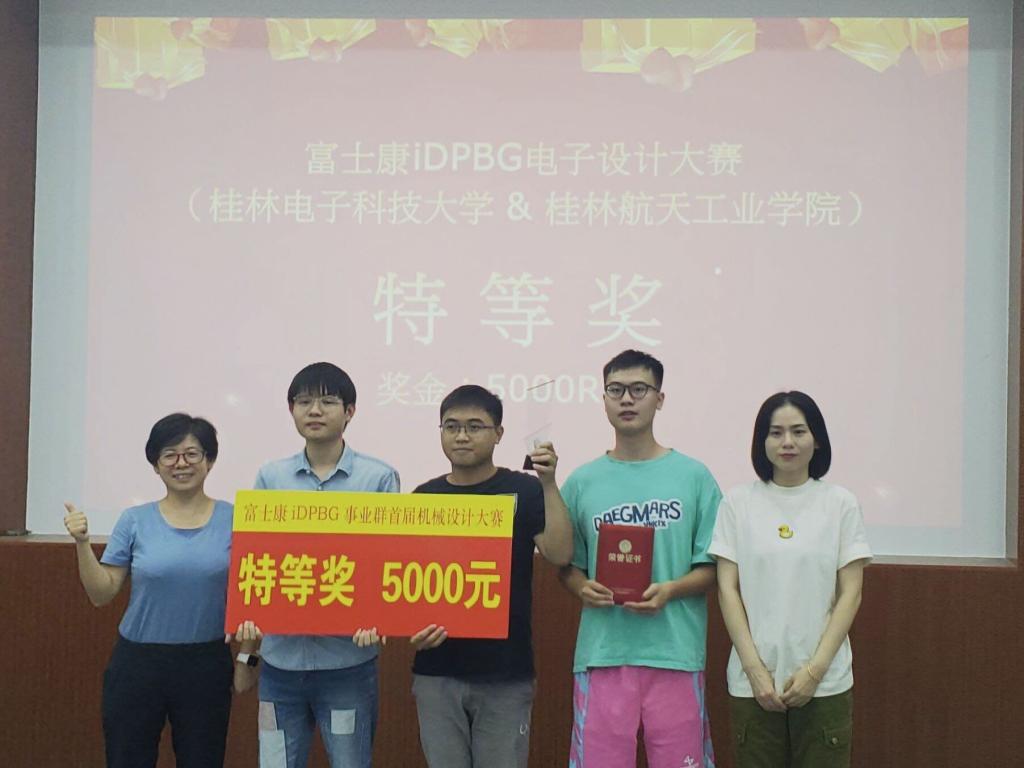 9月29日,富士康科技集团iDPBG事业群首届电子&机械设计竞赛总决赛暨颁奖仪式在桂林电子科技大学花江校区圆满举行。在本次活动中,我校400多学生组成的147支参赛小组参与比赛,与桂林电子科技大学学子同台竞技。其中,我校学子荣获特等奖2组,一等奖1组,二等奖4组,三等奖7组。