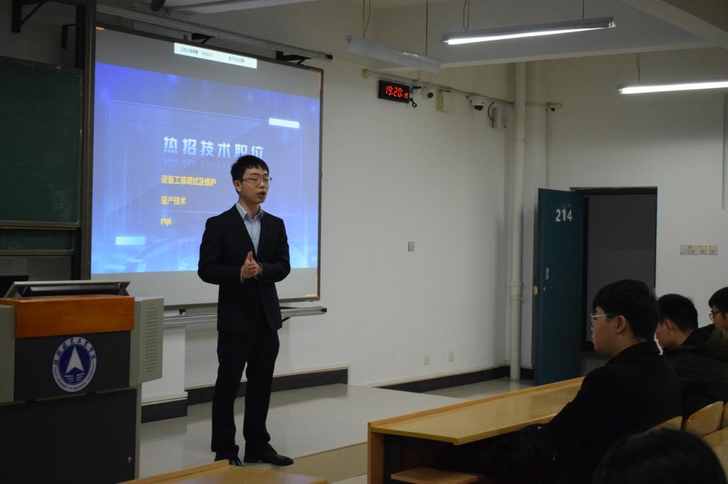 宁波舜宇光电信息有限公司宣讲人从员工发展前景、福利待遇、工作时间、地理环境等方面进行了详细的讲解,并重点讲解了公司的新产品,介绍了设备工程调试及维护、量产技术、PQE等热招技术岗位。其指出,人才培养对于企业发展起到关键性作用,校企合作为企业提供了一个良好的平台,符合社会潮流和企业需求,企业参与是校企合作的必由之路,也是教育持续发展的坚实依托,使双方互利共赢。