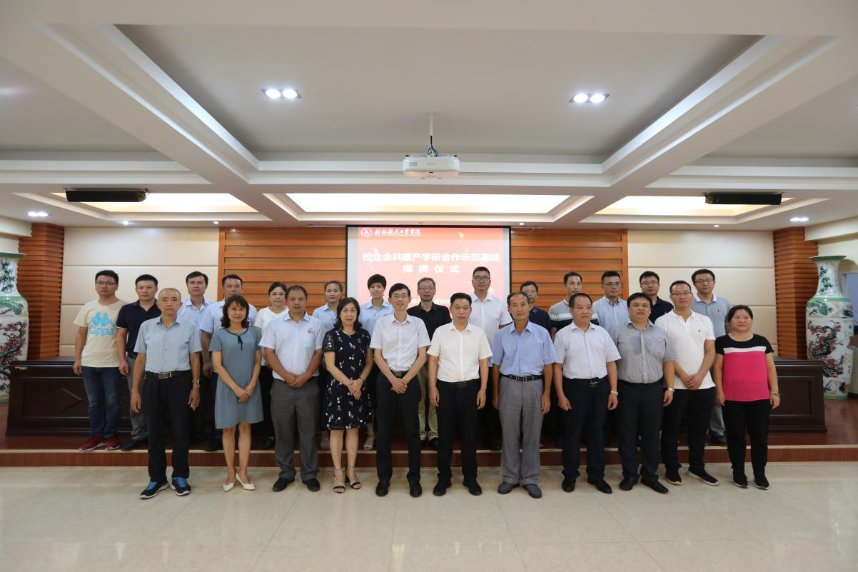 合作共赢,打造产学研基地,奏响校企会合作最强音。7月20日下午,以我校为依托,与广西机械工程学会、桂林金洋地质工程机械有限公司三方合作共建的“校企会产学研合作示范基地”揭牌仪式在我校飞天楼520会议室隆重举行。自治区科协党组成员、副主席朱其东,我校副校长孙山林,桂林市科协主席俸文英、广西机械工程学会理事长李尚平,桂林金洋地质工程机械有限公司总经理黄建成等领导出席揭牌仪式,自治区科协、桂林市科协,合作三方单位相关部门领导及我校机械工程学院部分师生代表参加了揭牌仪式。仪式由机械工程学院筹办,科技处主要负责人主持。