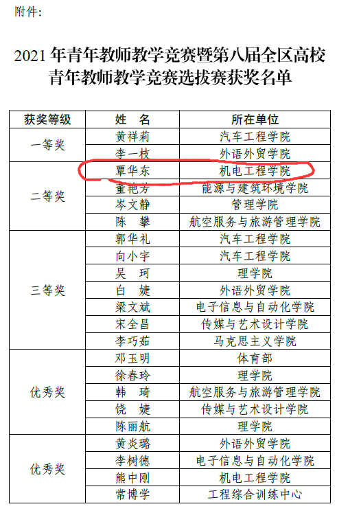 覃华东—2021年全区高校青年教师教学竞赛二等奖