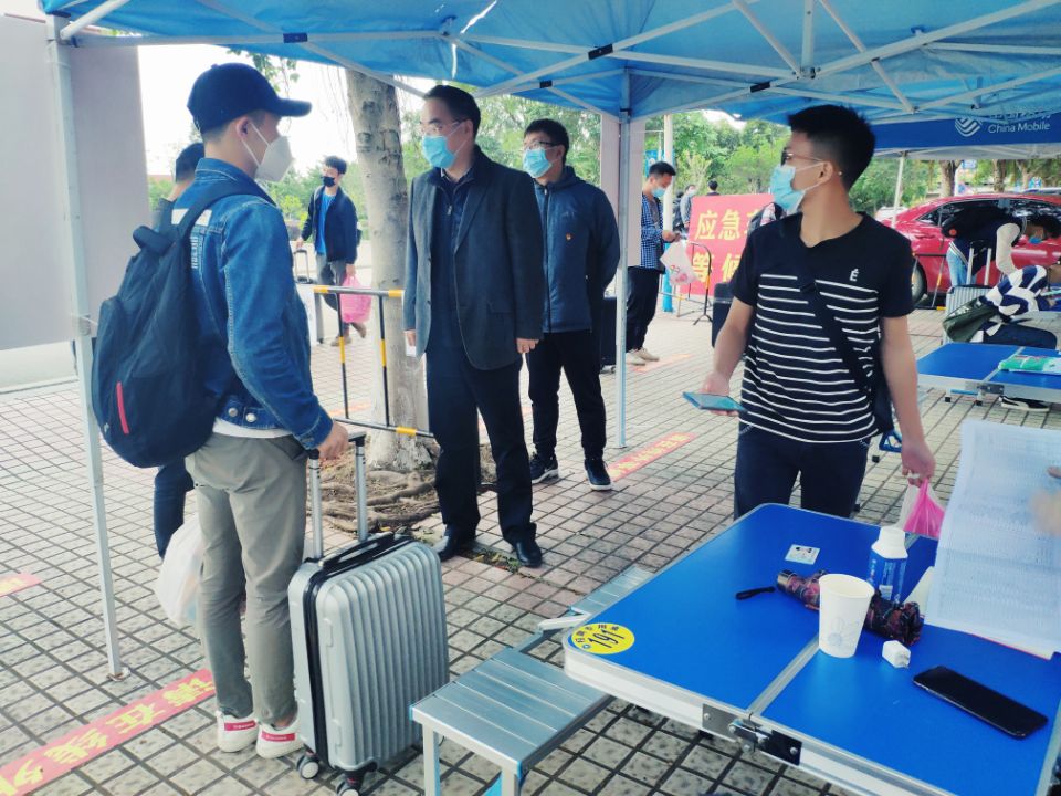 机械工程学院学工队伍和党员教师,根据学校学生返校证件核验工作值班表的安排,按时、按质、有效的积极落实毕业年级学生返校现场核查工作,严格执行“一测、二消、三核、四通过”的程序,精准防控为学生入校筑起第一道防线,热情周到的服务让学生们深感温暖。