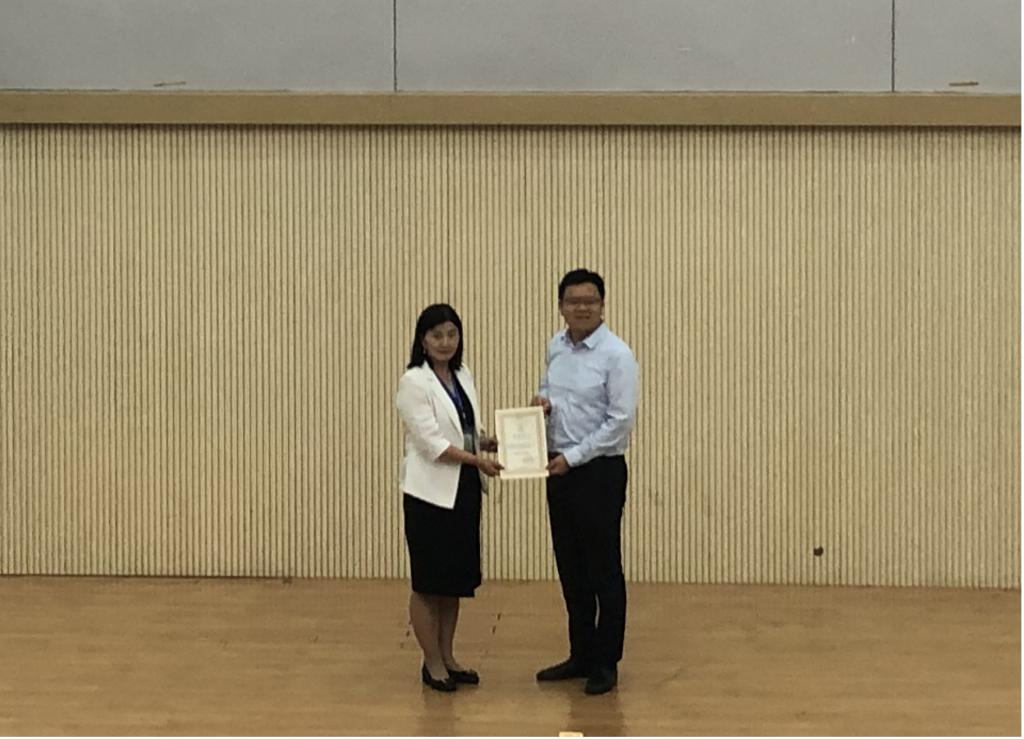 杨莉教授为团体奖单位颁发证书