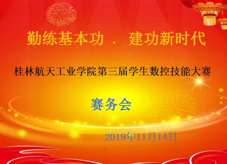 为贯彻落实党的十九大关于“建设知识型、技能型、创新型劳动大军,弘扬劳模精神和工匠精神,营造劳动光荣的社会风尚”的精神,认真贯彻党中央加快建设制造强国的战略部署,结合学校党委“不忘初心、牢记使命”主题教育,由教务处主办、机械工程学院承办、以“勤练基本功.建功新时代”为主题的桂林航天工业学院第三届学生数控技能大赛于2019年11月23日拉开了帷幕。