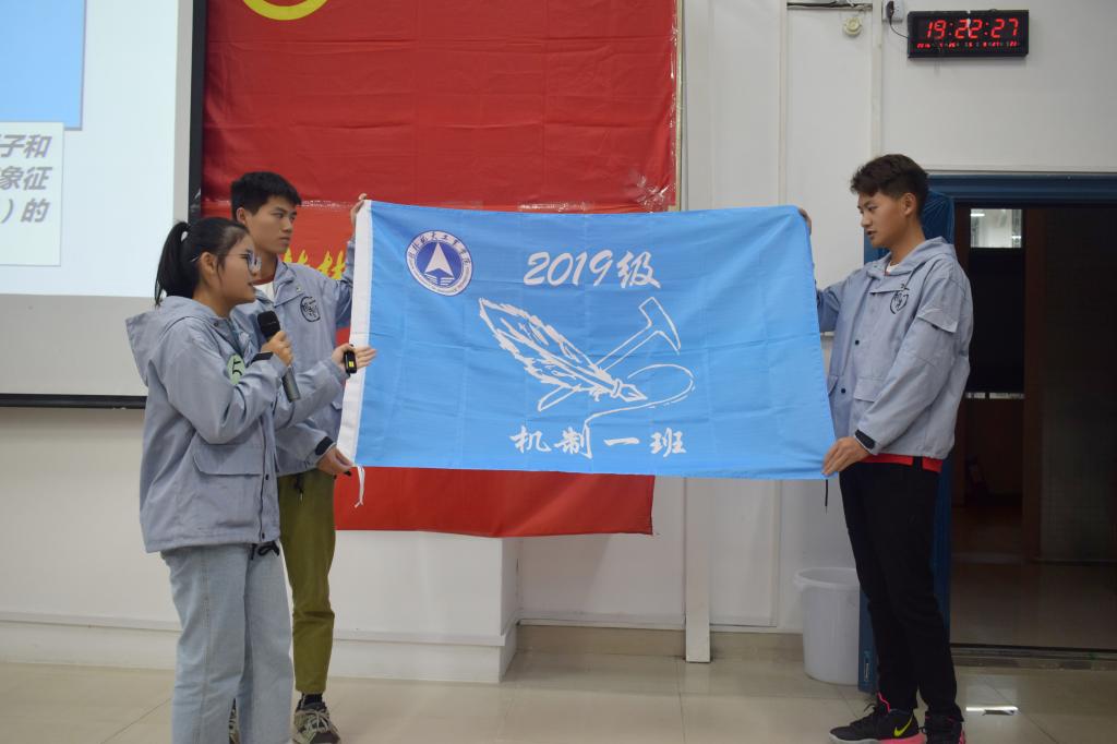 大赛上,我院各班都展示了独具特色的班服、班旗和班徽。各班讲解员认真全面对本班的设计理念与构想进行了讲解。在有奖问答环节,同学们积极踊跃回答问题。随着各班精彩的展示,大赛逐渐进入尾声。我院团委书记韦喆对本次比赛进行了点评与指导并对同学们的成果展示表示肯定。最终,材控一班脱颖而出获得了本次大赛的一等奖;机电三班、机电四班荣获二等奖;机电一班、机电二班、机制二班荣获三等奖;机制一班、机制三班、机制四班、材控二班、飞制一班、飞制二班荣获创意奖。