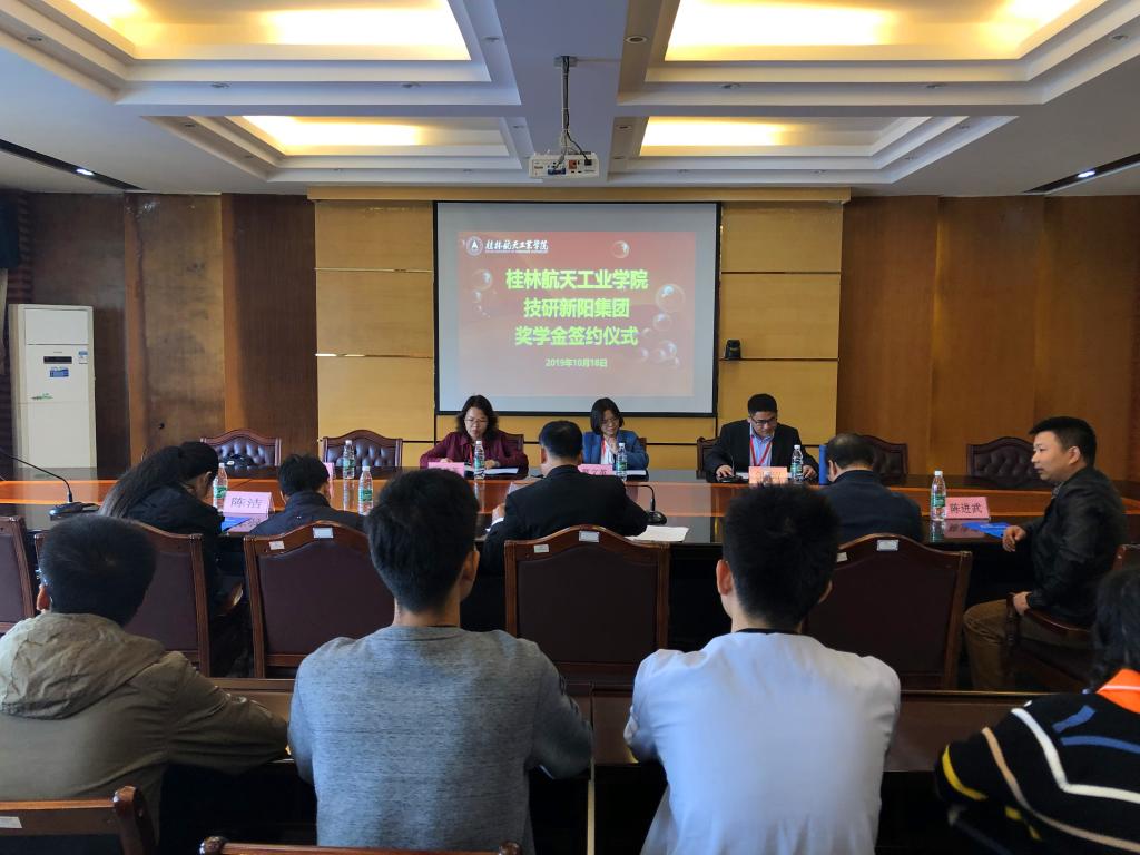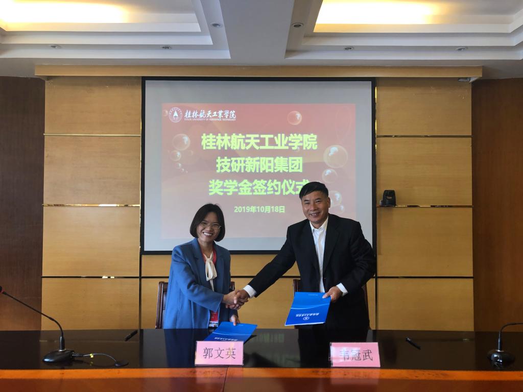 借桂林航天工业学院建校40周年发展大会契机,10月18日上午,我校与技研新阳集团在飞天楼517会议室,举行校企合作奖学金签约仪式。公司董事总经理郭文英、公司行政中心总经理郭建英,我校纪委书记韦冠武、学工部部长王凯、机械工程学院院长李天明、电子信息与自动化学院党总支副书记陈洁、机械工程学院教研室负责人陈进武以及相关专业代表学生参与仪式。仪式由韦冠武书记主持。
