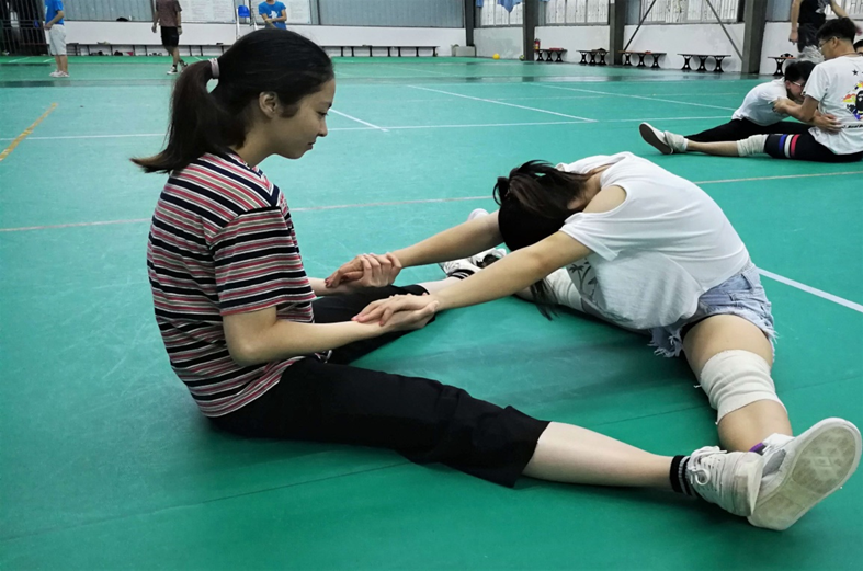 台上一分钟,台下十年功。一支能赢得掌声的舞蹈,其背后,是同学们又苦又涩的汗水日夜积累而来。压腿劈叉、旋转跳跃……每项基本功都默默支撑着这看似简单实则繁杂的舞蹈动作。高强度的训练、三十几度的高温、不厌其烦的重复动作时常让同学们心力交瘁,然而每当翩翩起舞的时,展现的是满满的自豪感。