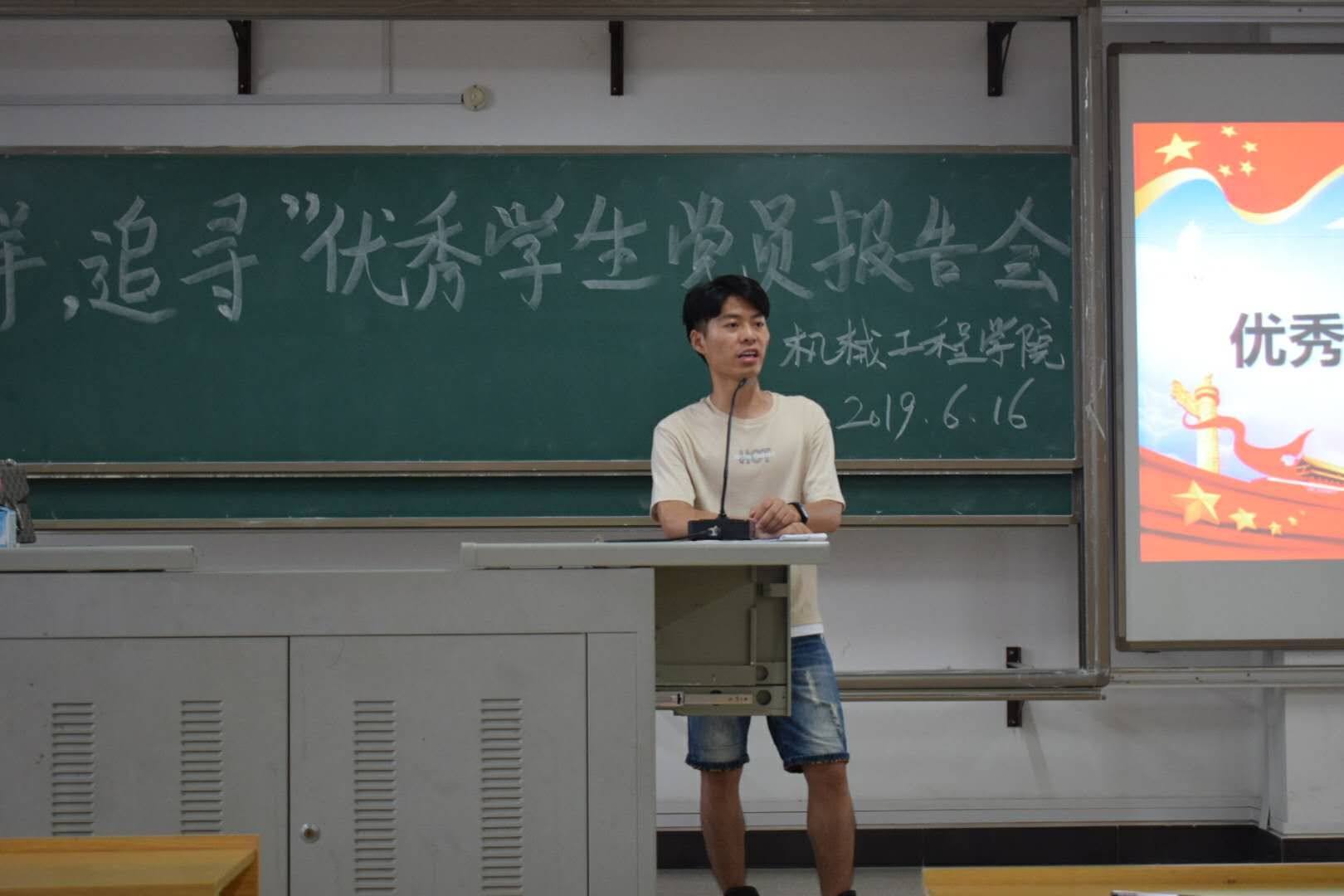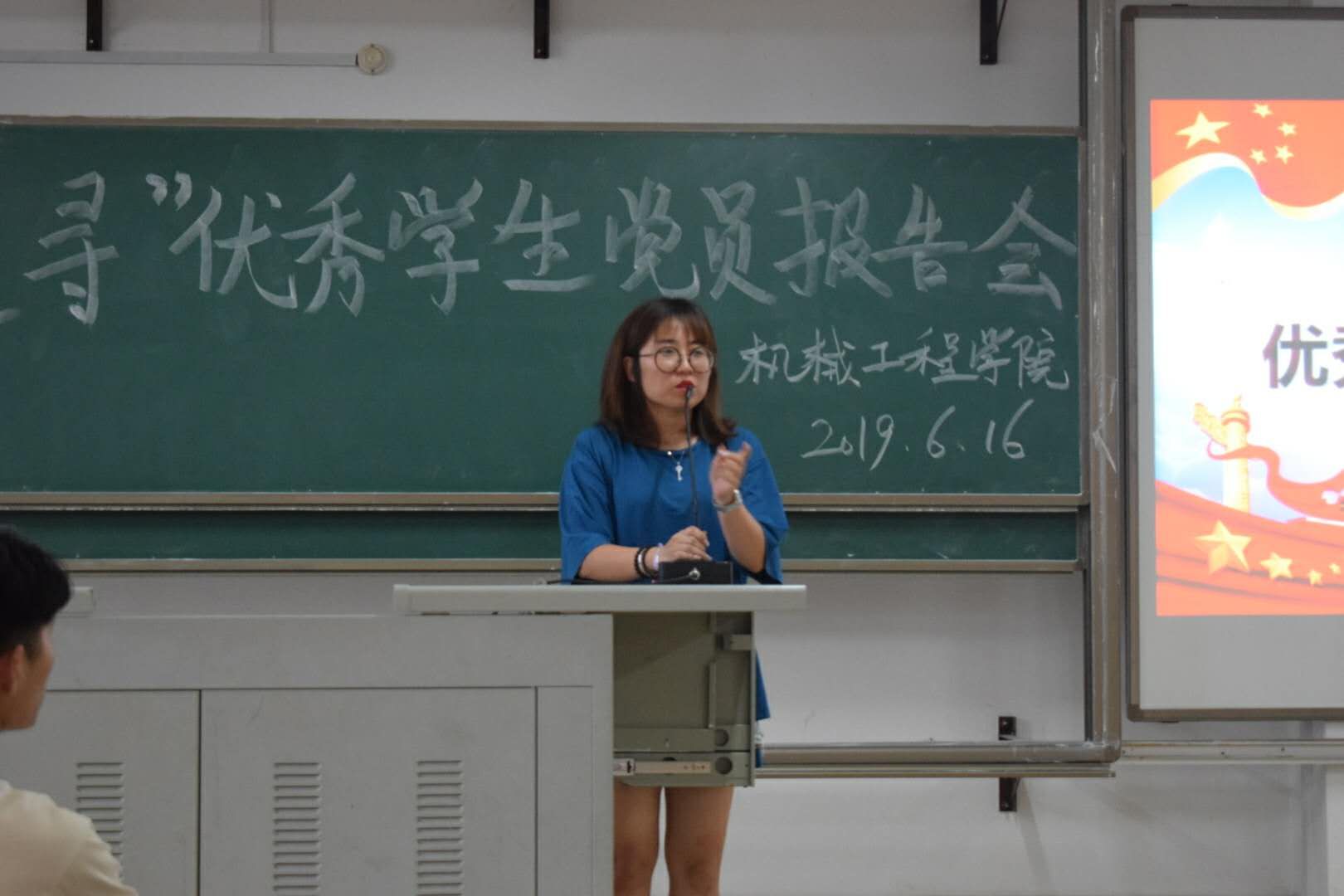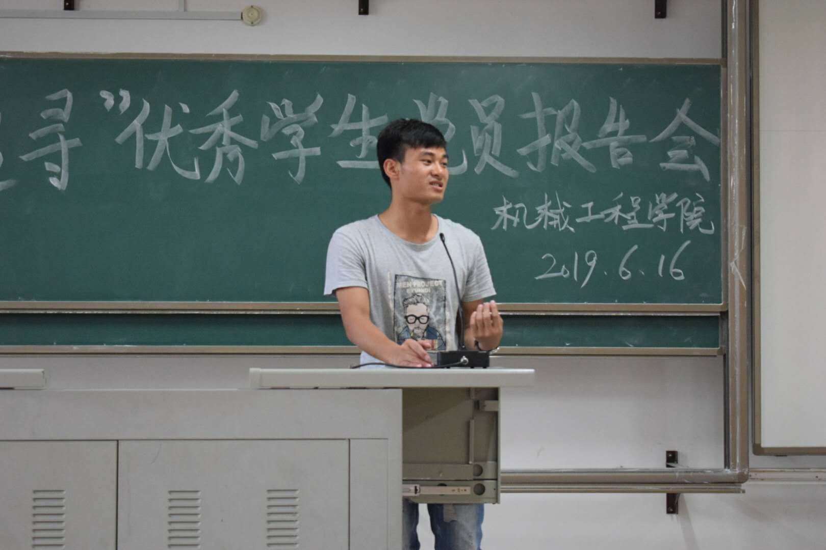 喜迎建囯七十周年,树立优秀先锋典型。我院于6月16在飞天楼217,举办“榜样、追寻”优秀学生党员报告会。出席本报告会有我院梁蕊老师,优秀学生党员唐克好、魏孔堂,张晓斌、赖世坤四位优秀学生党员。18级材控全体学生、16级飞行器制造工程、16级机械设计制造及其自动化(中职升本)全体同学悉数参会。