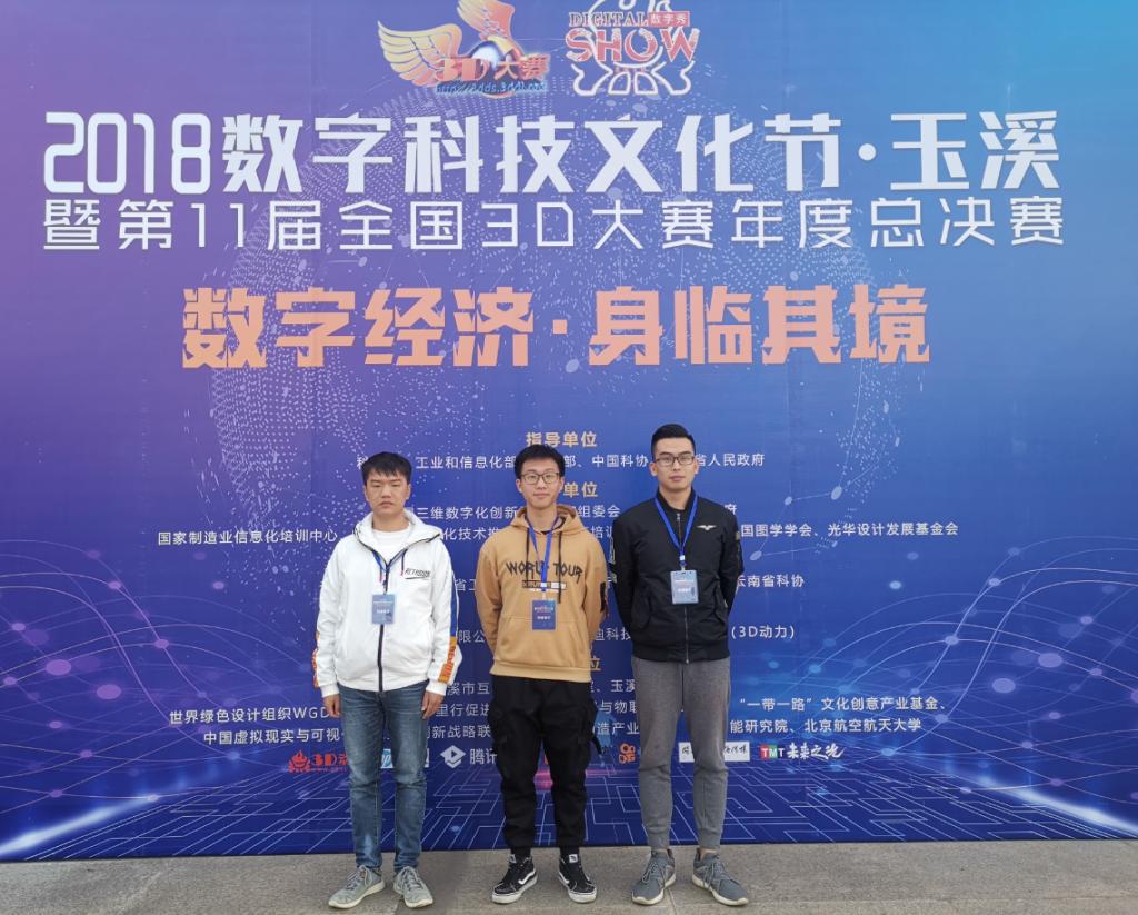 第11届全国3D大赛(全称“全国三维数字化创新设计大赛”)年度总决赛于2018年12月6日至12月9日在云南省玉溪市举办,我校代表队“桂航号”在“开放自主命题”板块的“数字工业设计大赛”方向中获得三等奖。