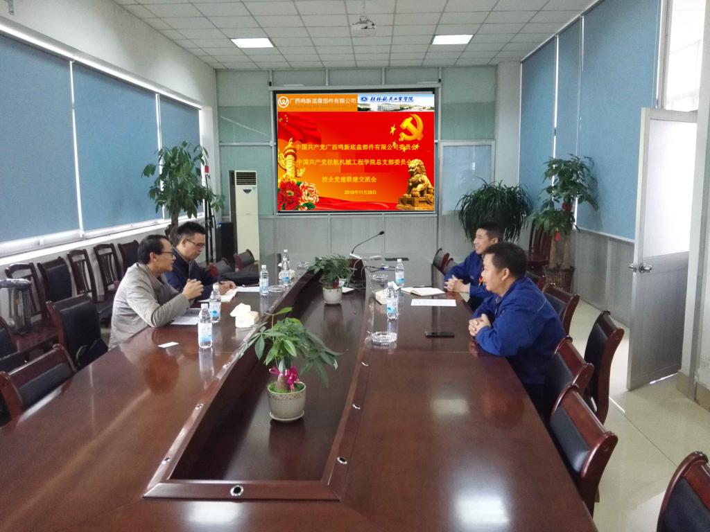 为更好地贯彻落实党的十九大精神,激发党建新活力,提升和拓展校企合作项目活动的服务平台。11月28日桂林航天工业学院机械工程学院党总支与广西鸣新底盘部件有限公司党委结成联建共建单位。