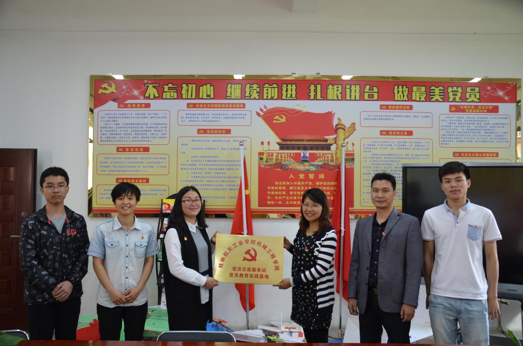 认真学习与贯彻党的十九大精神,大力推进学院党建工作。4月24日下午机械工程学院党员志愿服务站暨党员教育实践基地在桂林市芦笛小学进行挂牌。学院团委书记韦喆、学院党总支学生第二支部书记余丽云、学院党总支学生第一支部教师吕佳,部分学生党员以及志愿者代表们参加了挂牌仪式。