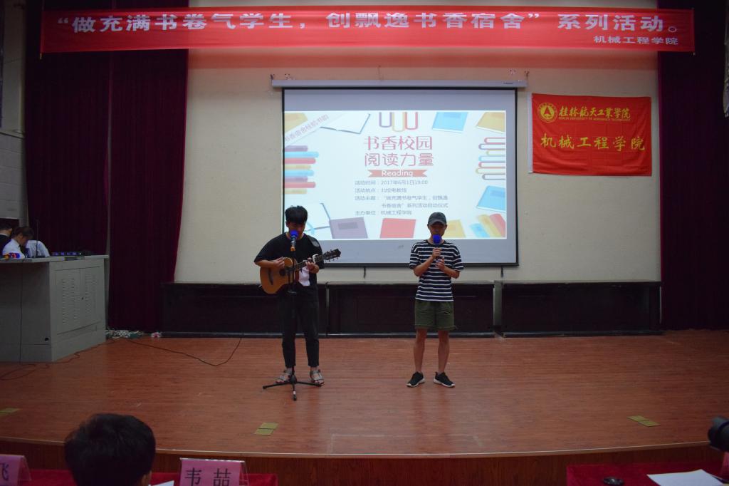 为丰富同学们的校园生活,推进我校书香校园的创建活动,6月1日晚19点在我校北校电教馆开展了“做充满书卷学生,创飘逸书香宿舍”的读书活动启动仪式,公寓科管理科科长刘飞老师、我院团委书记韦喆老师、项目指导石颖老师、辅导员余丽云老师、庞南霞老师、李康海老师以及各班级学生代表出席了此次读书活动仪式。