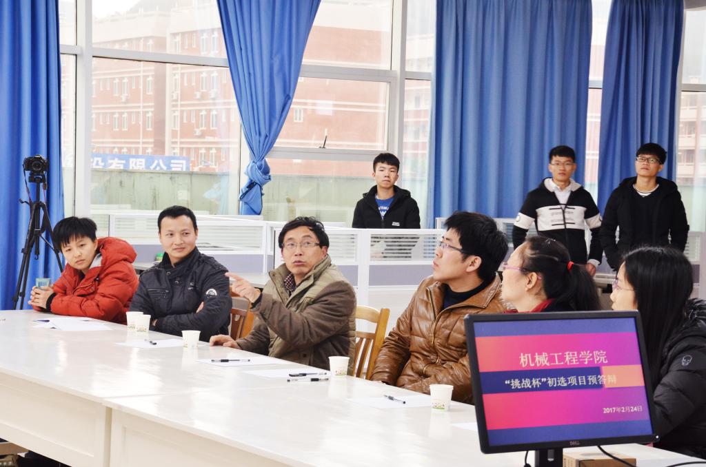 为了更好的准备“挑战杯”的选拔,使更多师生参与创新创业,投入到学生科技第二课堂中去。我院于2017年2月24日下午在机械创新实践中心进行了“挑战杯”项目预答辩活动,共有9项学生课外科技作品参加答辩,机械工程学院邹爱成副院长、张政泼教授等8位老师作为评委参加了本次答辩。