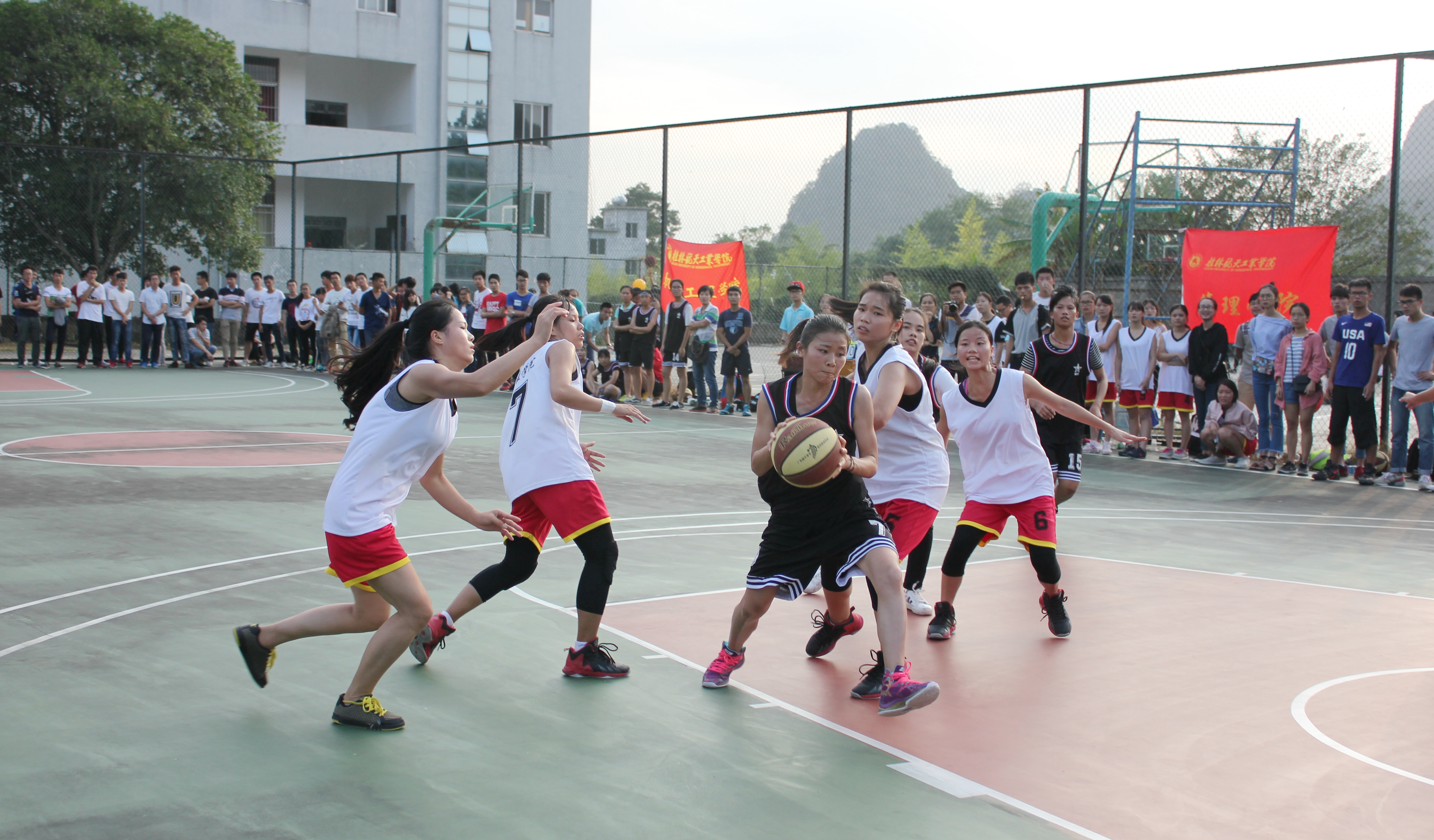 10月24日下午4:30,由校体育部举办的秋季联赛决赛在北校区4号篮球场顺利进行,由我院女队对阵管理学院女队。