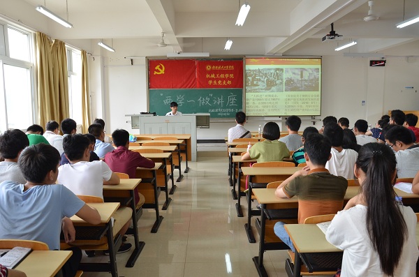“两学一做”基础在学,关键在做。为进一步提高教职工和学生党员对“两学一做”战略思想的认识和学习,6月3日,机械工程学院党总支在飞天楼404开展了习近平治国理政思想学习报告会。报告会由我校中科院在读博士研究生王钰鑫主讲,我院教职工党员和全体学生党员70余人参加座谈会。
