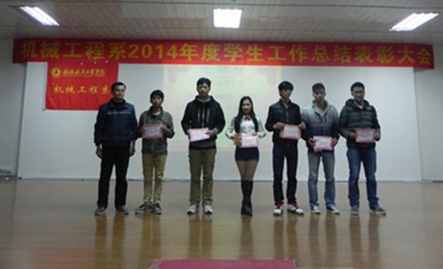 为表彰先进集体及个人,树立典范,进一步调动同学们学习的积极性,我系于12月8日晚在北校区招聘大厅隆重召开“机械工程系2014年度学生工作总结表彰大会”。系党总支副书记李志老师、辅导员老师、获奖代表和各班级代表出席了本次大会。会议由蒋丽丽老师主持。