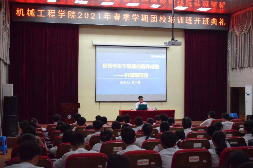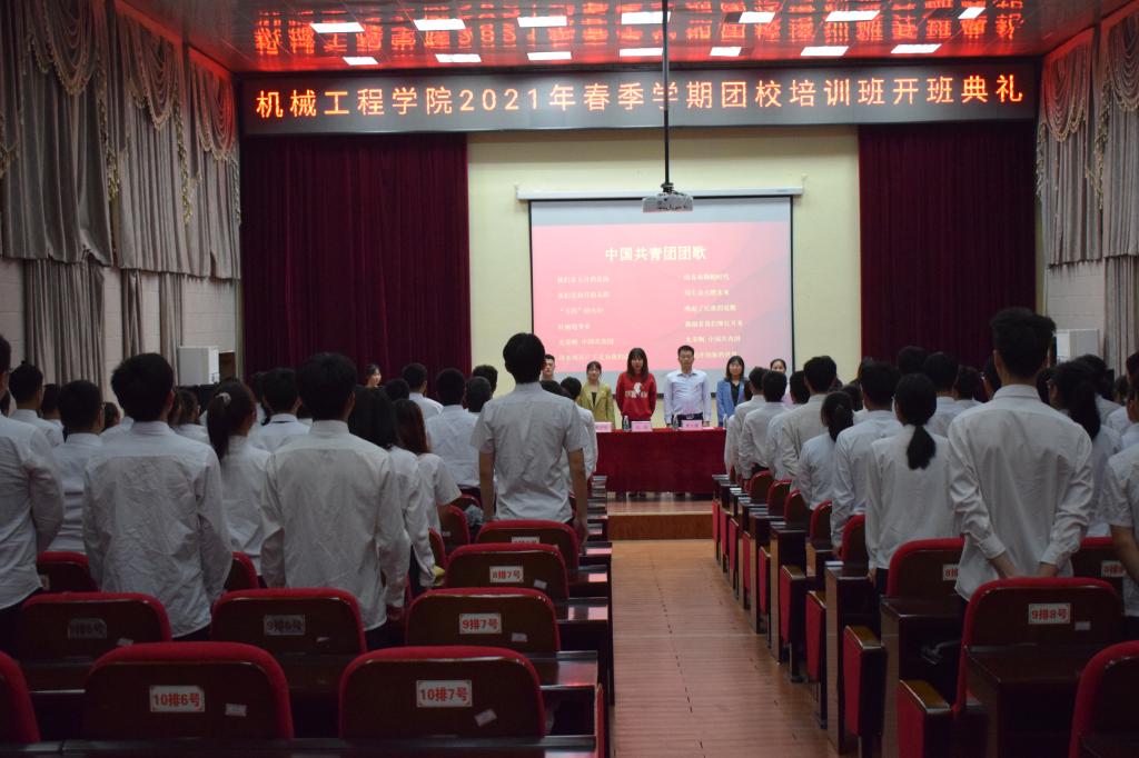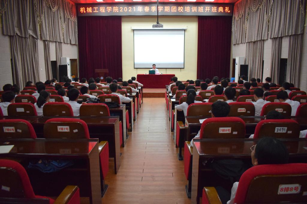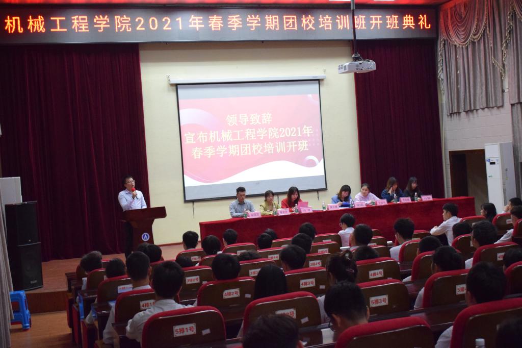 为了加强学生干部政治素质和工作能力,帮助学生们更快地成长,机械工程学院于2021年3月29日晚19:00在北校电教馆举行了2021年春季学期团校开班典礼。出席本次开班典礼的有学院团委书记,以及学院全体学工办教师,团委、学生会、新媒体中心及学院易班工作站的全体成员参加了培训班。