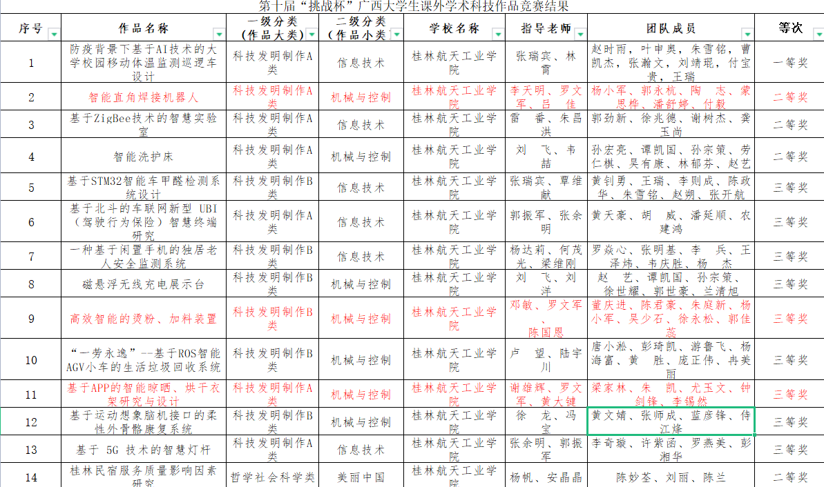 bevictor伟德官网共计三个作品,在百余件参赛作品中脱颖而出,获得广西赛区区级奖项。其中,杨小军团队作品“智能直角焊接机器人”斩获二等奖,董庆进团队作品“高效智能的烫粉、加料装置”和梁家林团队作品“基于APP的智能晾晒、烘干衣架研究与设计”荣获三等奖。