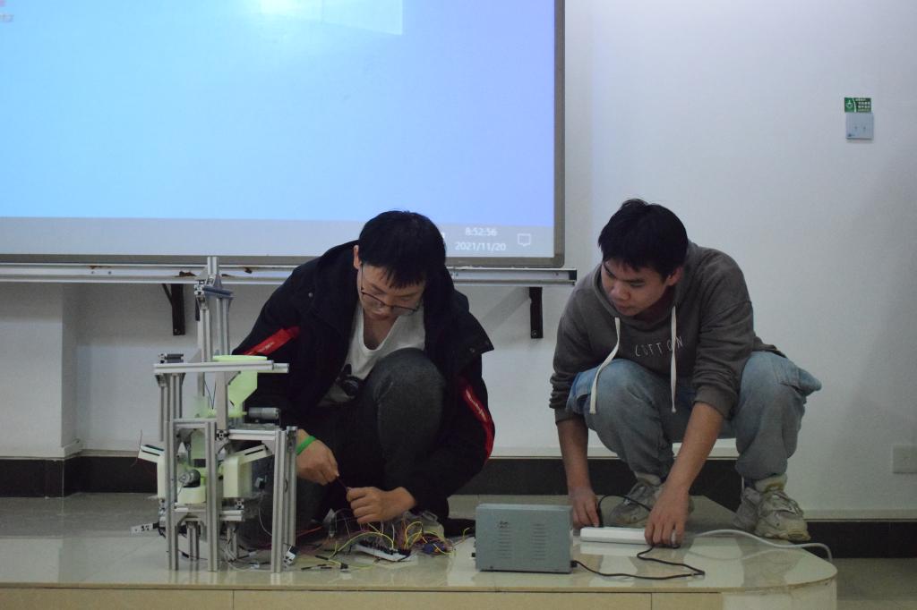 此次比赛采用了自由命题和固定命题两种形式。比赛过程中,参赛团队积极展示自己的作品,有条不紊的进行正常功能演示与讲解。评委老师对学生们的作品流露出赞许,也指出不足之处,并给予有效建议和指导。整个选拔赛气氛活跃,同学们在老师的指导下有了新的感悟,在相互的交流中也得到了新的启发。