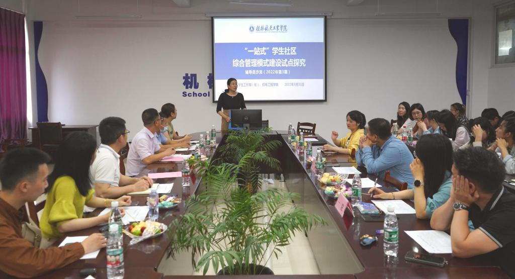 学生工作部(处)负责人首先介绍了“一站式”学生社区综合管理模式建设的背景、学校建设实施方案及目前试点建设工作开展情况。她强调各学院应充分认识“一站式”学生社区综合管理模式的重要意义、全面把握“一站式”学生社区综合管理模式的内涵要求,通过深化认识形成管理服务机制,把党建引领、思政教育、管理服务等力量下沉到学生公寓开展工作,扎实做好“一站式”学生社区综合管理模式的实践探索。
