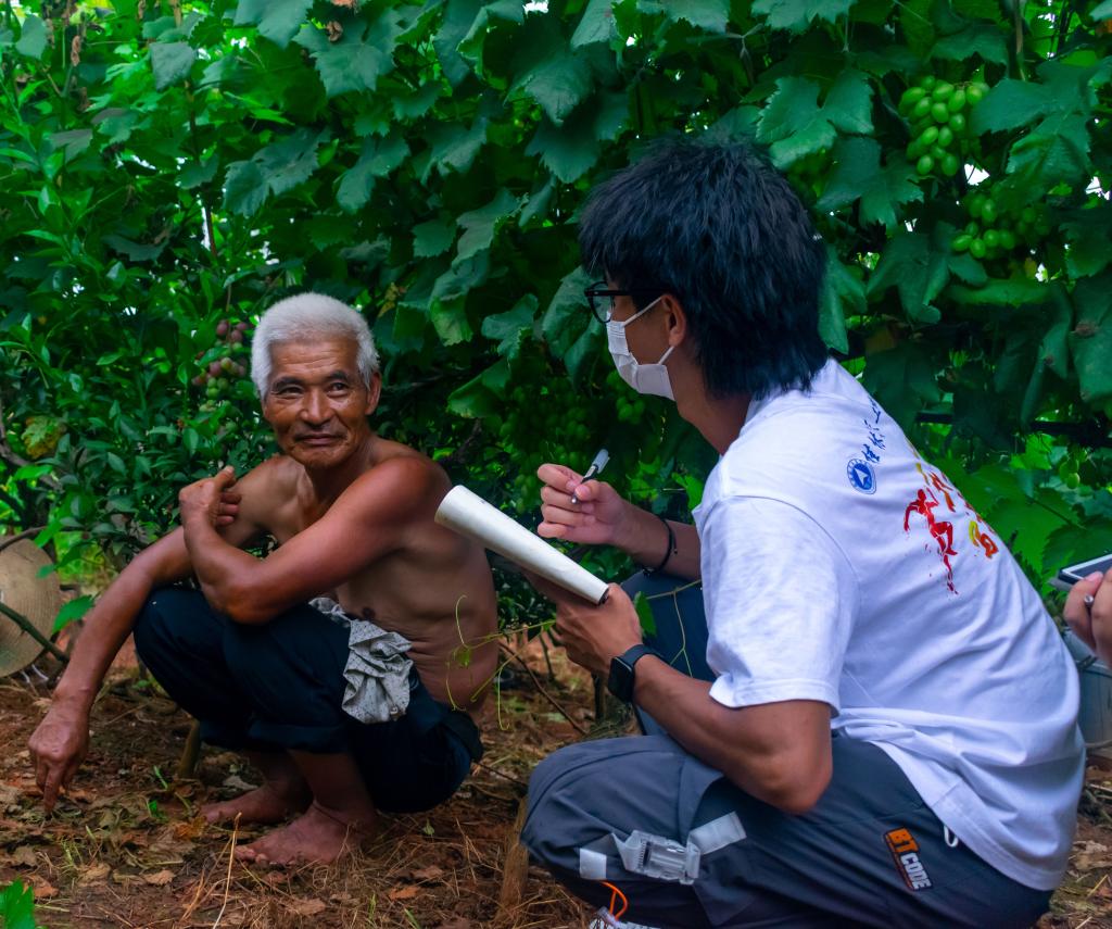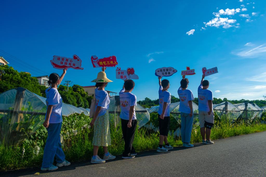图为实践成员在毛竹山村田间拍摄宣传海报