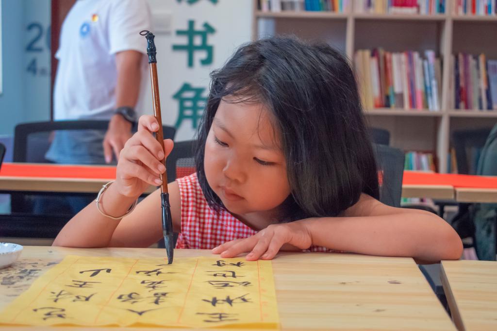 中华文化博大精深,书法艺术源远流长。书法教学活动上,团队成员从握笔姿势到写字的间架结构、笔画笔顺等入手,手把手教孩子们书写,一竖一撇一捺,教授孩子们书写着毛竹山村幸福篇章,为大家带来了一场书法盛宴。很多孩子都是第一次“零距离”接触毛笔书法,学习过程中非常认真,仔细聆听团队成员传授的书法知识,用心书写一笔一划。挥洒之间,一幅幅叙写着毛竹山村致富“故事”的书法作品跃然纸上,稚嫩的笔墨,浸润着孩子们的心灵,在孩子们心中播撒下了美好高雅的艺术种子。