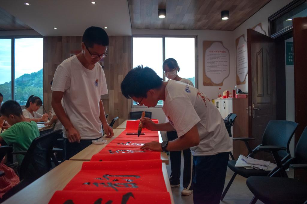 为引领青年大学生在社会实践过程中“受教育、长才干、做贡献”,进一步推动大学生们为乡村振兴的文化赋能,展现青年的责任与担当,7月22日,桂林航天工业学院bevictor伟德官网“我在‘窗口’写青春”暑期实践团下乡毛竹山村,学以致用,结合自身书法技能,开展“走读壮乡共富路,墨染乡村新画卷”书法教学活动。