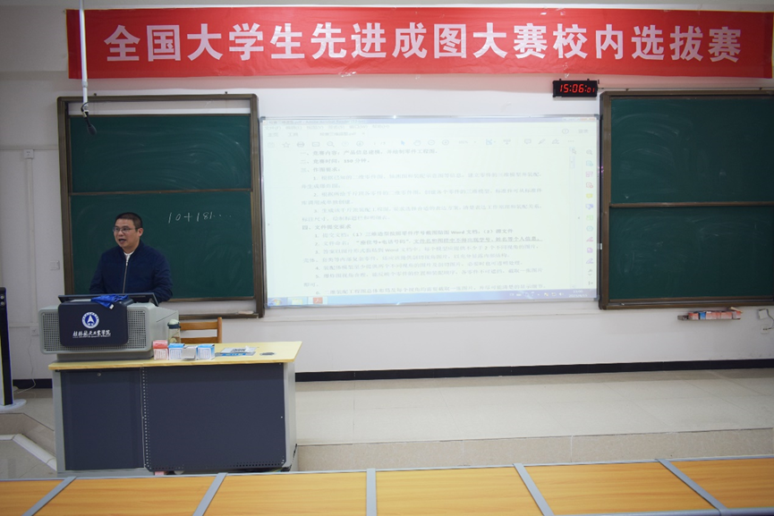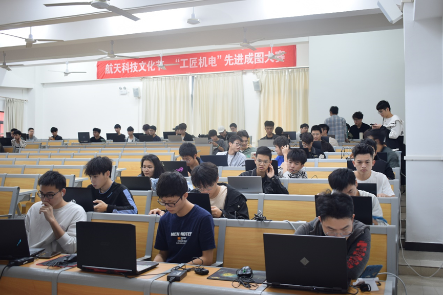 赛前,谢雄辉首先对同学们在以往比赛中取得的成绩表示肯定。他说,此次比赛打响了学院“工匠机电”专业科技文化节系列活动的第一炮,希望同学们能通过此次比赛,将所学专业知识与实践紧密结合,提高自身的制图能力。竞赛现场气氛高涨,同学们认真投入其中。